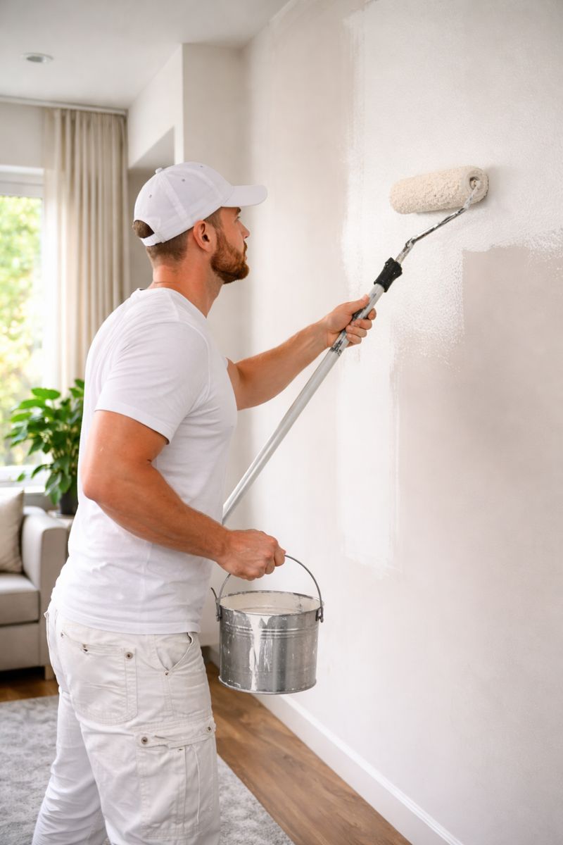 Nymålade väggar och tak med jämn finish och skarpa kanter.