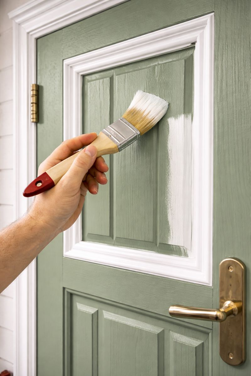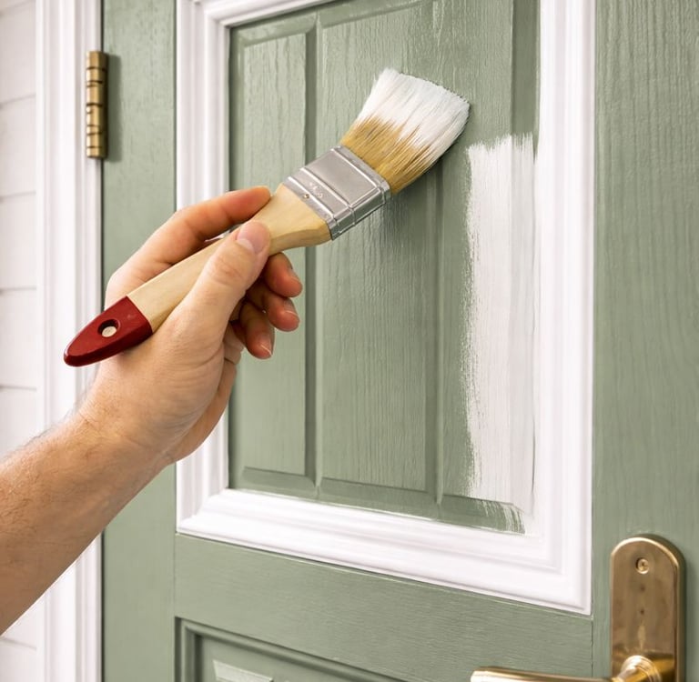 Målning av fönster, dörrar och trädetaljer – snyggt och väl skyddat.