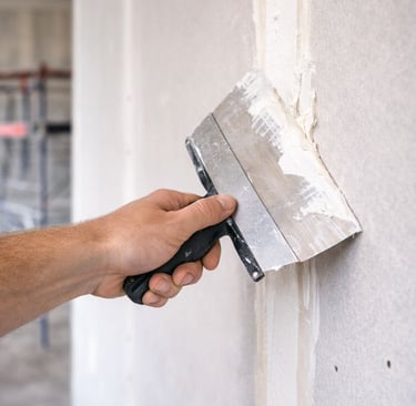 Vi spacklar och lagar ytor så att allt blir slätt inför målning eller tapetsering.
